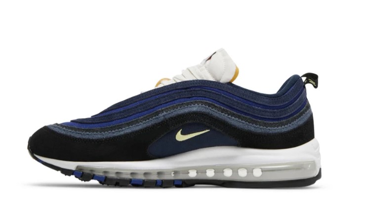 The Air Max 97 SE Blue is drawn from the Air Max Running Club collection, inspired by a fictional 70s track team and showcasing the vintage aesthetic of the decade that birthed a running revolution.