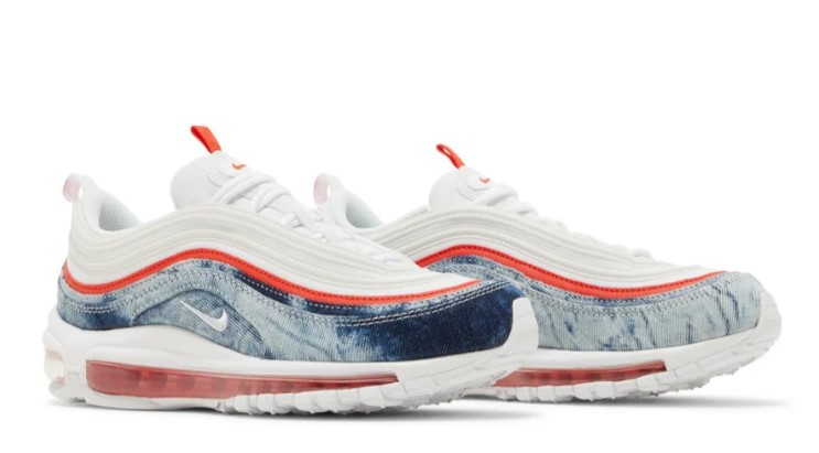 The Air Max 97 Washed Denim combines classic style with contemporary design, featuring a unique upper crafted from washed denim material. This sneaker offers a laid-back yet stylish look, with contrasting white and black accents on the Swoosh and midsole. The full-length Air Max unit provides superior comfort and impact absorption, while the rubber outsole ensures reliable traction and stability. Perfect for those who appreciate a blend of style and functionality, the ‘Washed Denim’ is a standout addition to any sneaker collection.