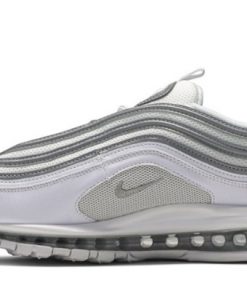 The Air Max 97 White Silver offers a sleek and modern design with its clean colorway and iconic silhouette. The upper is crafted from a mix of mesh and synthetic materials, featuring a crisp white base accented by metallic silver details on the Swoosh and overlays. This combination creates a sophisticated look that complements any outfit. The full-length Air Max unit provides exceptional comfort and impact absorption, while the rubber outsole ensures reliable traction and durability. Perfect for those who appreciate classic style with a modern twist, the White Silver is a versatile addition to any sneaker collection.