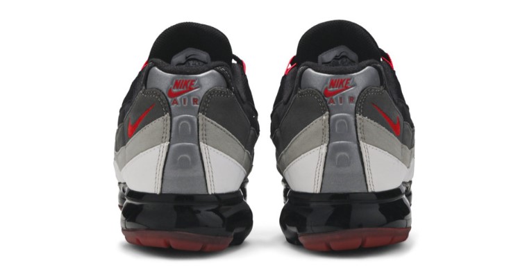 The Air VaporMax 95 Hot Red features a gradated Hot Red, Dark Pewter, Granite and white colorway. Black laces fasten across a cushioned tongue accented with Air Max embroidery, while vibrant lace loops punctuate the eyestay.