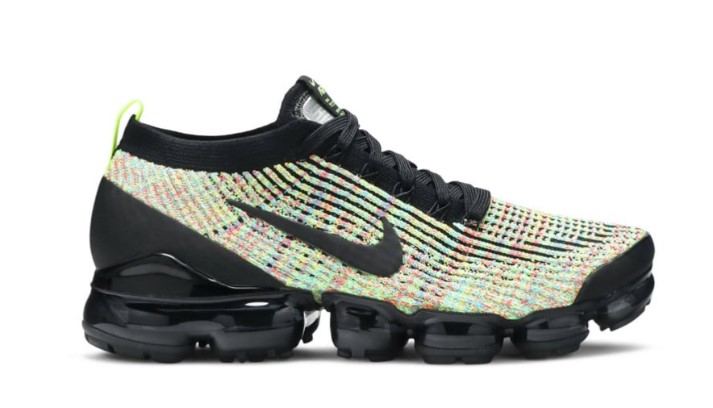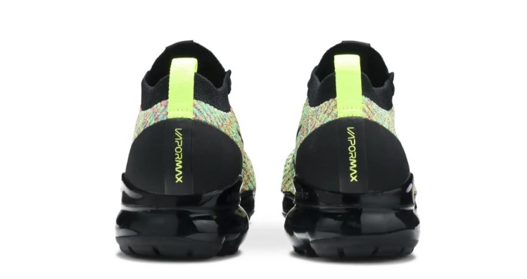 The Air VaporMax Flyknit 3 Multi-Color offers a vibrant and eye-catching design with its unique colorway and advanced technology. The Flyknit upper features a multi-color pattern, providing a lightweight and breathable fit. The full-length VaporMax air unit delivers superior cushioning and support, while the TPU heel clip ensures stability. The rubber outsole provides reliable traction, making this sneaker ideal for those who want to make a statement with their footwear.
