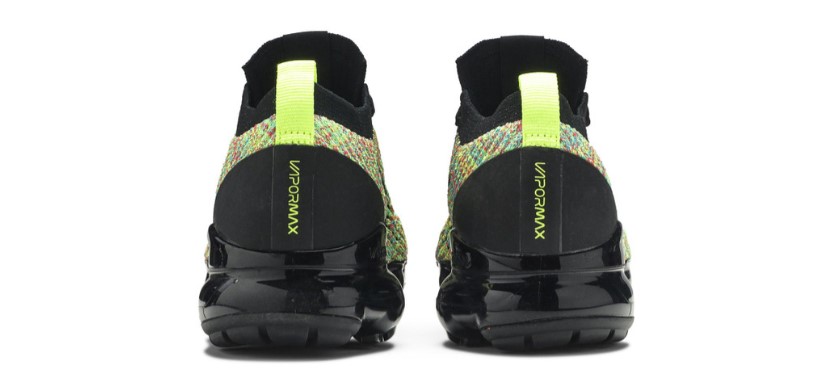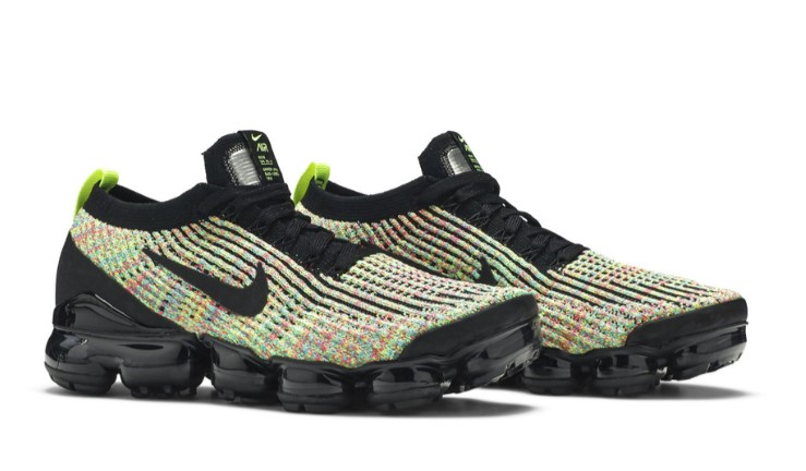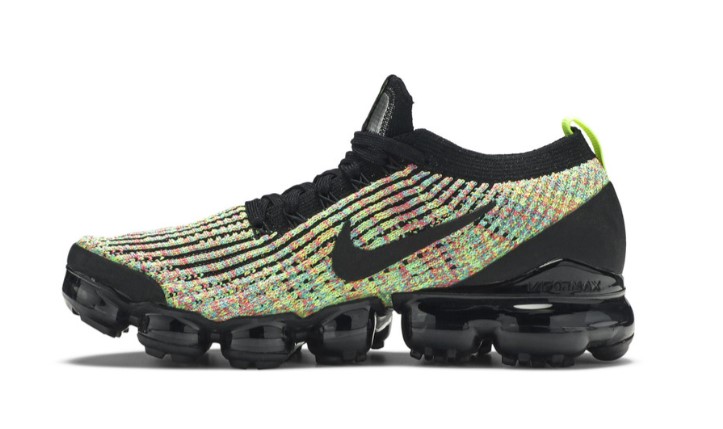 Feather-light and ultra-cushioned, the Air VaporMax Flyknit 3 combines innovation with revolutionary design. With a snug, sock-like fit, the Multi-Color Flyknit upper is reinforced with a black heel clip and accented by Volt accents throughout.