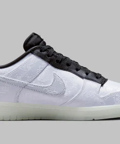 The Dunk Low CLOT Fragment White is a stylish and highly sought-after release that combines the best of both worlds from two influential brands. Featuring a clean white upper crafted from premium leather, this sneaker is complemented by subtle black accents and the iconic CLOT and Fragment Design logos. The design is enhanced by unique detailing, including custom branding and intricate patterns that set it apart from other releases. Inside, the Dunk Low CLOT Fragment White is lined with soft, breathable fabric to ensure comfort throughout the day. The cushioned midsole provides excellent support and impact protection, making it suitable for both casual wear and more active pursuits. The rubber outsole is designed with a classic tread pattern for reliable traction on various surfaces. This sneaker is perfect for collectors and fans of both CLOT and Fragment Design, offering a sophisticated and stylish option that celebrates the collaboration between these two iconic brands.