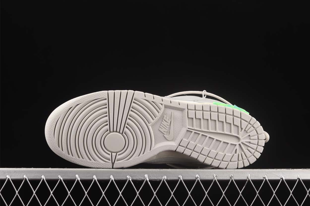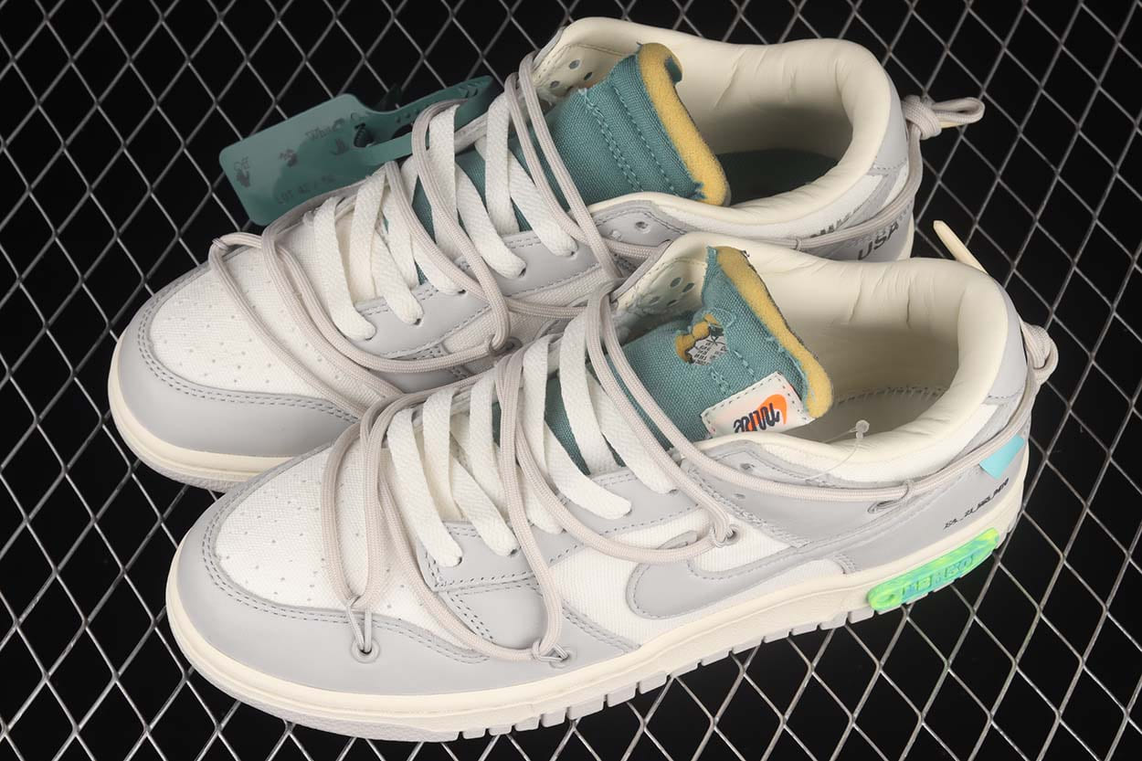 The Dunk Low Off-White Lot 42 is an exceptional piece from Virgil Abloh’s “The 50” collection, showcasing a masterful blend of classic design and modern innovation. The sneaker features a neutral-toned upper, crafted from high-quality leather and canvas, providing both durability and a refined texture. Off-White’s signature deconstructed aesthetic is evident in the exposed foam, zip tie, and Helvetica text branding, which give the shoe a distinctive, industrial look. The overlay lacing system, presented in a vibrant hue, adds a dynamic contrast, making this pair a standout in any collection. Inside, the sneaker is lined with soft, breathable fabric, ensuring comfort throughout the day. The cushioned midsole offers excellent support and shock absorption, making it suitable for both casual wear and more active pursuits. The rubber outsole is designed with a classic tread pattern, delivering reliable traction on various surfaces. As part of one of the most influential sneaker collaborations in recent history, the Dunk Low Off-White Lot 42 is a must-have for collectors, fans of Virgil Abloh’s work, and anyone who appreciates innovative design. This sneaker represents the perfect fusion of art, fashion, and street culture.