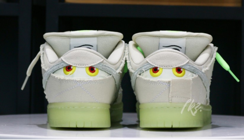 The Nike SB Dunk Low Mummy embraces a Halloween-inspired theme with its eerie design. The sneaker features a textured upper that mimics the look of wrapped mummy bandages in a ghostly white and tan color palette. Glow-in-the-dark accents enhance the spooky effect, making the Mummy Dunk Low perfect for festive occasions. Detailed with an eye-catching graphic on the insole and a classic Dunk silhouette, this sneaker includes a padded collar and cushioned midsole for comfort and support. Its unique design and seasonal theme make it a standout choice for collectors and fans of Halloween-themed footwear.