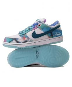 The SB Dunk Low Futura Laboratories Bleached Aqua is a striking sneaker that embodies the experimental spirit of Futura Laboratories. Featuring a vibrant bleached aqua colorway, this sneaker showcases a premium leather and suede upper with unique abstract patterns. The design is enhanced by contrasting black accents and a classic white Swoosh, creating a visually dynamic look. The cushioned midsole provides excellent comfort and support, while the rubber outsole ensures reliable traction and durability. Inside, the SB Dunk Low Futura Laboratories Bleached Aqua is lined with breathable fabric for all-day wearability. This sneaker is perfect for those who appreciate bold, avant-garde design and high-quality craftsmanship.